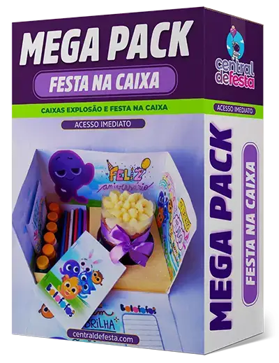 Pacote festa na caixa também conhecido como caixa explosão. Monte a caixa como preferir para colocar doces ou kits com guloseimas ou lembrancinhas. Todos os temas prontos para imprimir e montar, ganhe tempo preparando aquela surpresa única e especial. Uma surpresa divertida e exclusiva para inovar em sua festa ou como presente.
