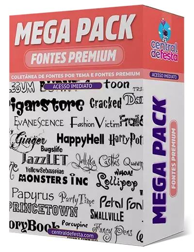 Pacote completo de fontes premiuns para textos organizadas por tema. Mais de 1000 fontes para você instalar em seu computador ou notebook e assim poder personalizar textos, nomes e criar palavras que combinam com o tema da sua festa, podendo personalizar os mais variados arquivos.