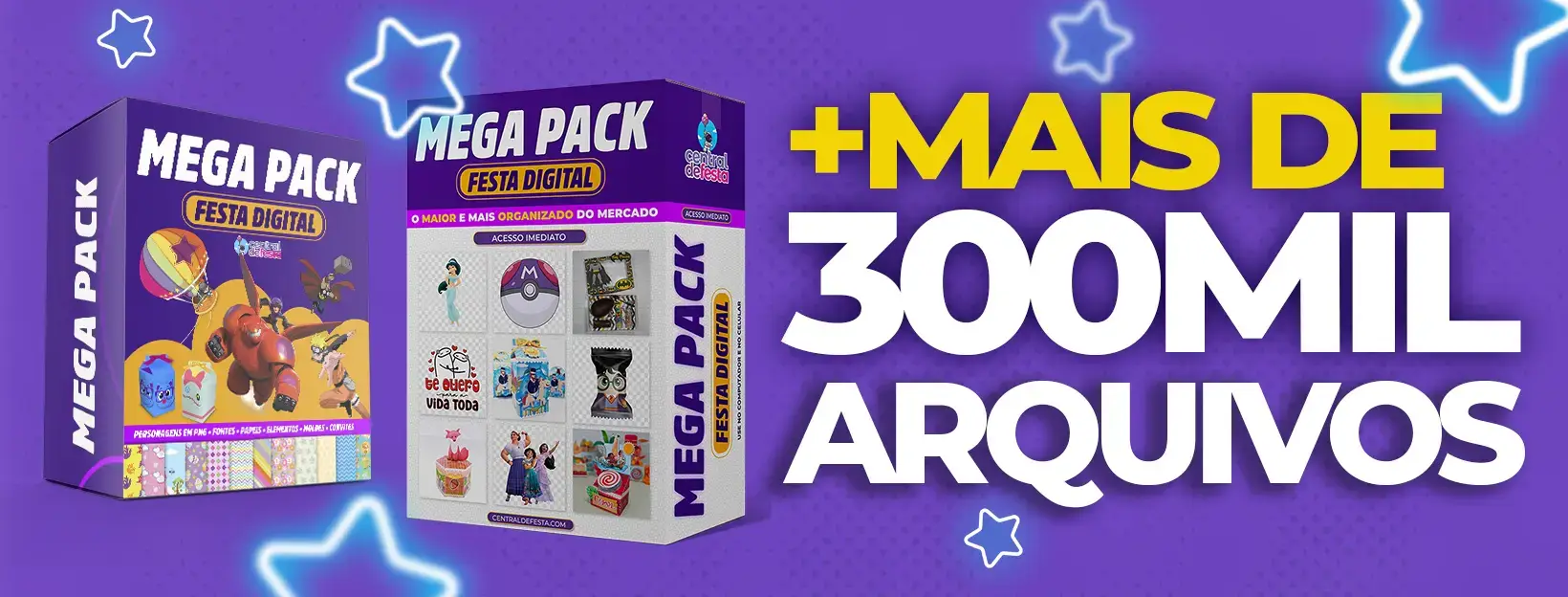 Não é curso! O Megapack Festa digital é um conjunto de arquivos que podem ser usados para criar elementos de decoração e papelaria para um (evento/festa), como convites, lembranças, topos de bolo, etiquetas de nome e outros itens. Os kits digitais geralmente incluem arquivos em diversos formatos, como JPG, PNG e PDF, e podem ser personalizados de acordo com as necessidades do usuário, alguns arquivos necessitam de softwares para a edição.